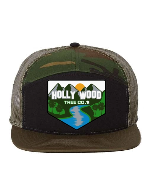 Stay cool with a Holly Wood Tree Co. 7-Panel Trucker cap.